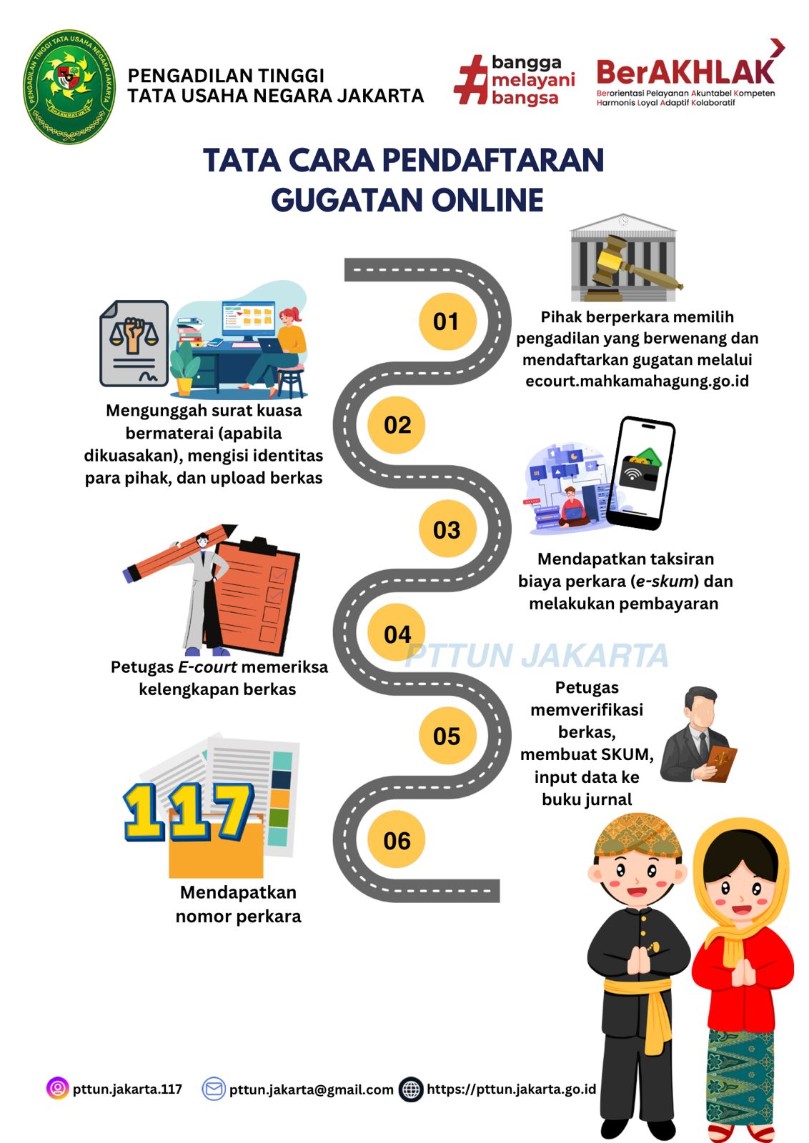 Dalam rangka meningkatkan pelayanan publik prima, saat ini telah tersedia fasilitas pendaftaran gugatan secara online melalui E-court yang dapat diakses di mana saja dan kapan saja. Simak langkah-langkah pendaftaran gugatan secara online melalui E-court sebagai berikut: